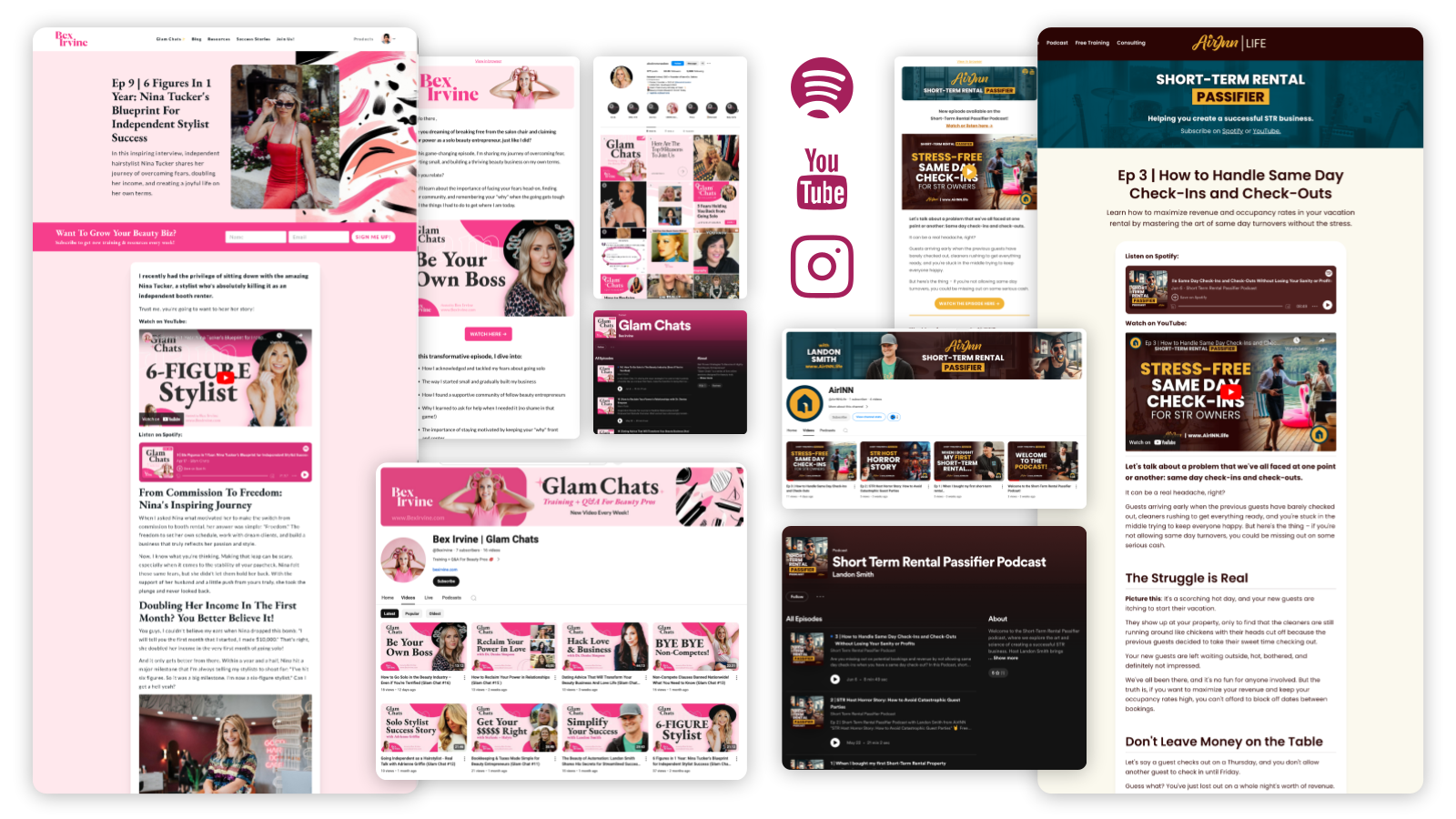 Your weekly blog article, podcast episodes, YouTube videos, and social media posts get shared across platforms to engage your followers and drive traffic.